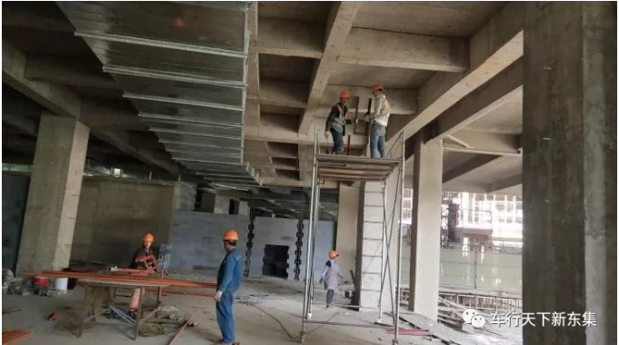 1、A座裙樓20#~11#板塊及汽車(chē)坡道鋼結構安裝完成;8#、9#板塊夾層樓板混凝土澆筑完成,夾層頂板施工;10#11#板塊夾層頂板混凝土澆完成;20#板塊裙樓負三層頂板施工。